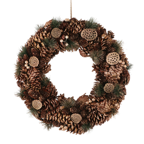 Новогодний декор ВЕНОК Золотой 9,5*48 СМ , поставляется компанией TRIUMPH NORD, очень красивое новогоднее украшение, которое можно использовать, как декор для стола под свечу, на дверь.