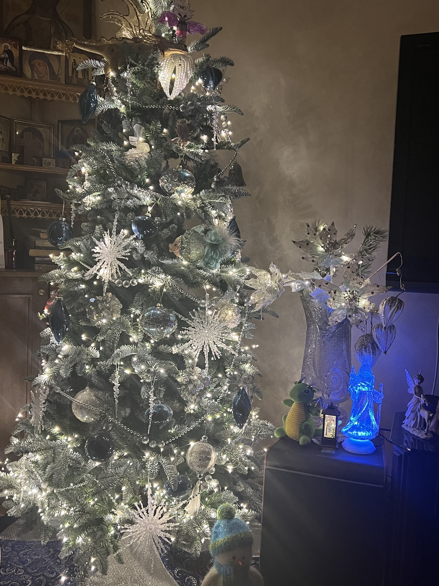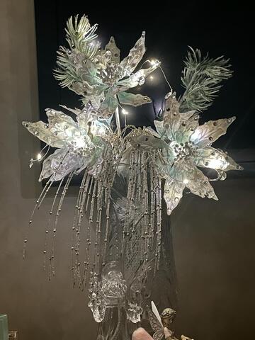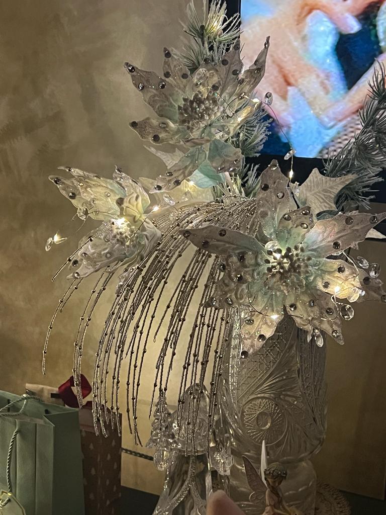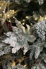 Очень красивое новогоднее елочное украшение веточка со стразами бело-голубая 69см из полиэстера.